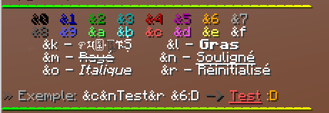 Attention, comme le stipule le Règlement en jeu, il est interdit d'utiliser un préfixe perturbant la lisibilité du chat. L'utilisation des codes « &0 », « &k », « &m », « &n » est donc interdite.